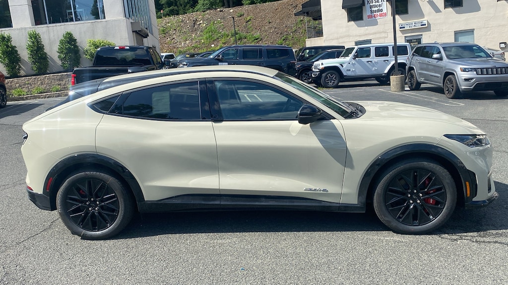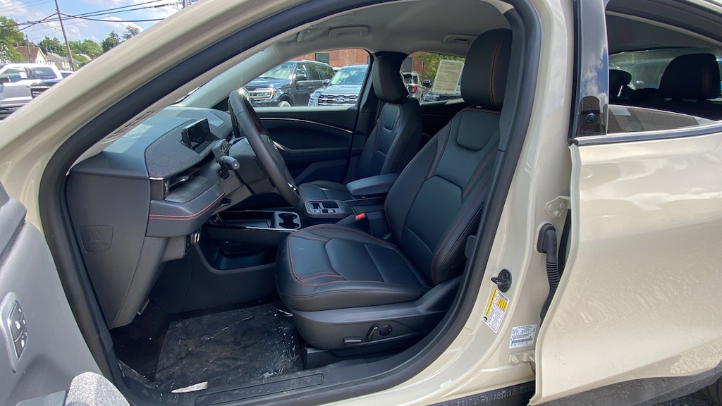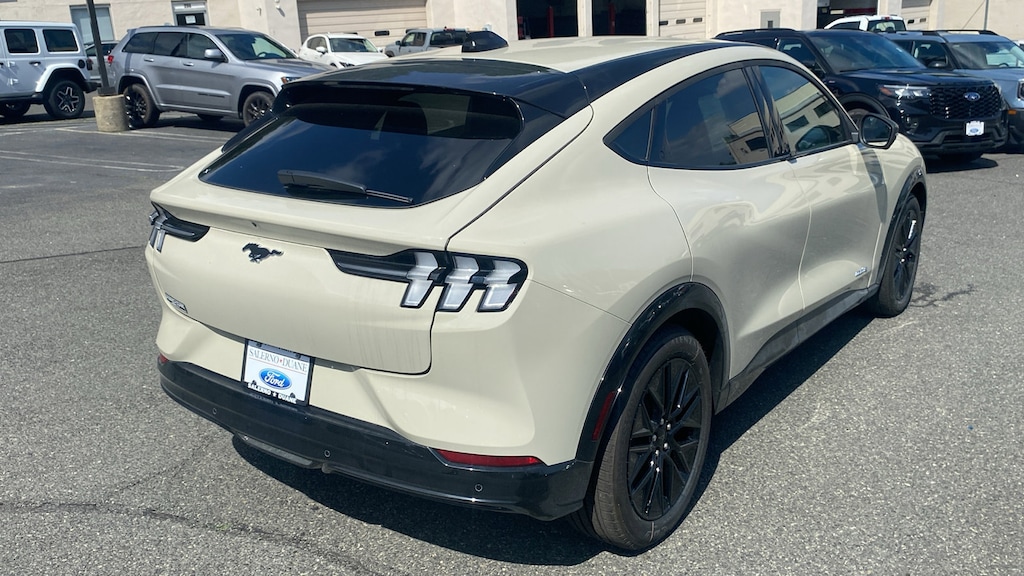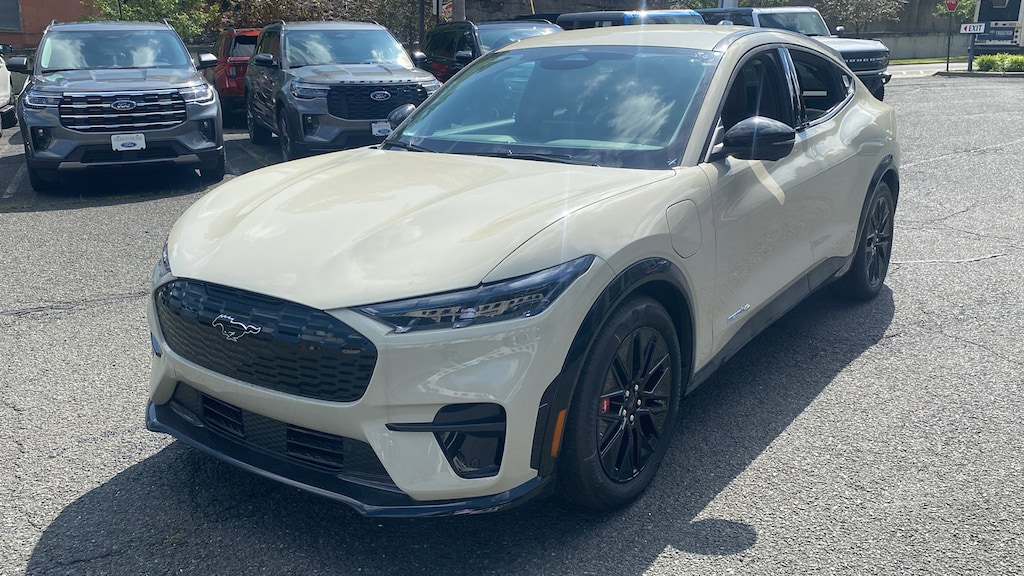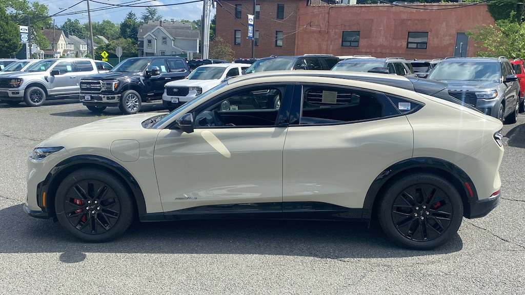 Desert Sand 2025 Ford Mustang Mach-E Premium AWD Single-Speed Automatic Dual Electric Motor 10 Speakers, 4-Wheel Disc Brakes, ABS brakes, Air Conditioning, Alloy wheels, AM/FM radio: SiriusXM with 360L, Apple CarPlay/Android Auto, Auto High-beam Headlights, Auto-dimming Rear-View mirror, Automatic temperature control, Brake assist, Brembo Branded Front Brakes, Bumpers: body-color, Compass, Delay-off headlights, Driver door bin, Driver vanity mirror, Dual front impact airbags, Dual front side impact airbags, Electronic Stability Control, Emergency communication system: 911 Assist, Equipment Group 300A Standard Package, Exterior Parking Camera Rear, Four wheel independent suspension, Front anti-roll bar, Front Bucket Seats, Front Center Armrest, Front dual zone A/C, Front License Plate Bracket, Front reading lights, Fully automatic headlights, Garage door transmitter, Heated door mirrors, Heated front seats, Heated steering wheel, Heated/Ventilated Perforated ActiveX Bucket Seats, Illuminated entry, Internet access capable: FordPass Connect, Knee airbag, Low tire pressure warning, Memory seat, Mobile Power Cord (120V/240V), Navigation system: Connected Navigation, Occupant sensing airbag, Outside temperature display, Overhead airbag, Overhead console, Panic alarm, Passenger door bin, Passenger vanity mirror, Power door mirrors, Power driver seat, Power Liftgate, Power passenger seat, Power steering, Power windows, Radio data system, Radio: B&O Sound System by Bang & Olufsen, Rain sensing wipers, Rear anti-roll bar, Rear seat center armrest, Rear side impact airbag, Rear window defroster, Rear window wiper, Red Painted Front & Rear Brake Calipers, Remote keyless entry, Security system, SiriusXM w/360L, Speed control, Speed-sensing steering, Speed-Sensitive Wipers, Split folding rear seat, Spoiler, Sport Appearance Package, Sport Pedals, Steering wheel mounted audio controls, SYNC 4A w/Enhanced Voice Recognition, Telescoping steering wheel, Tilt steering wheel, Traction control, Trip computer, Turn signal indicator mirrors, Unique Front Fascia, Variably intermittent wipers, Ventilated front seats, Wheels: 19 Bright Machined-Face Aluminum, Wheels: 19 Monochromatic High Gloss Black-Painted.