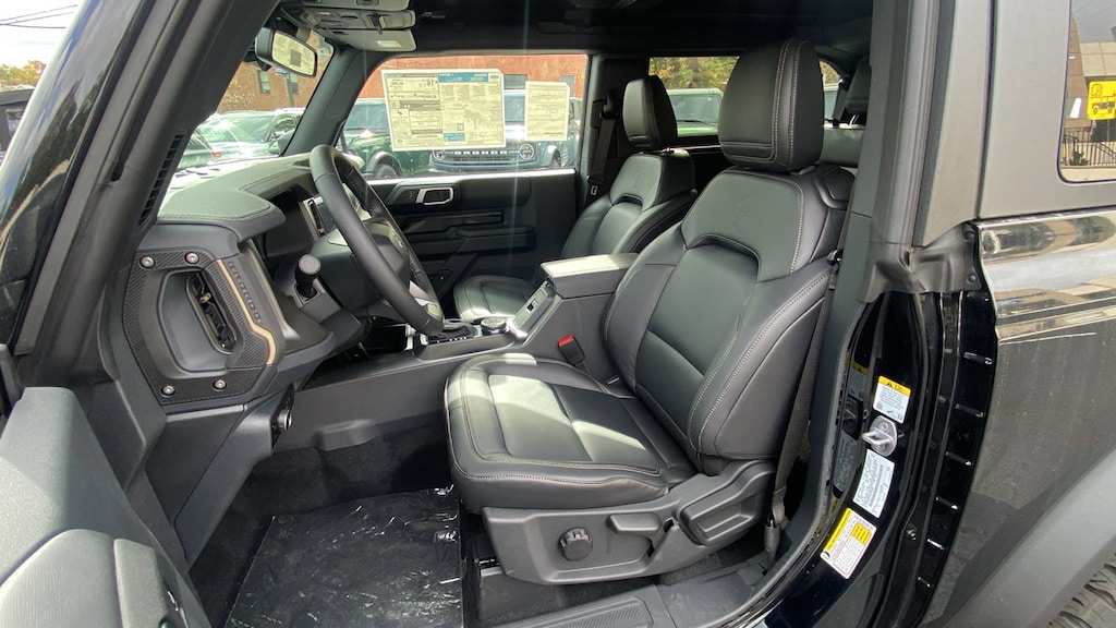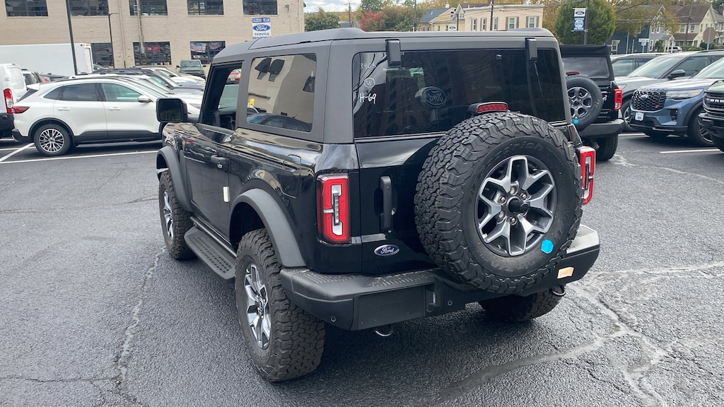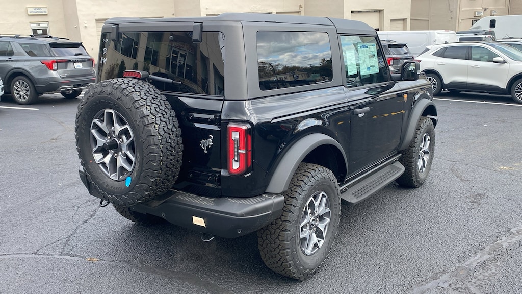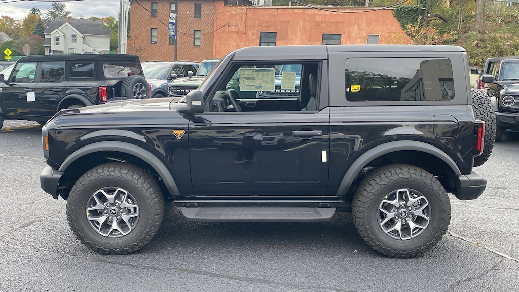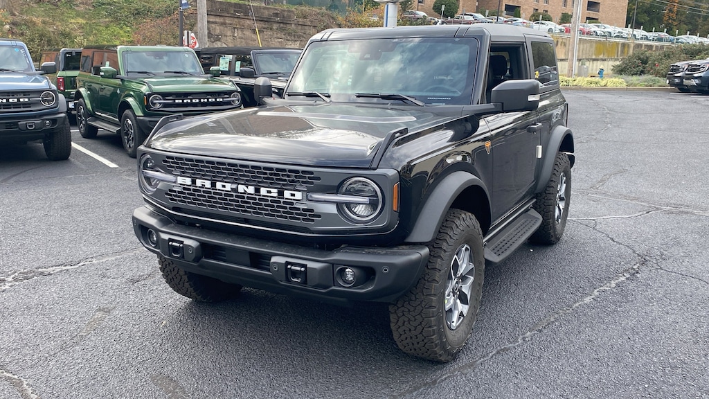 Shadow Black 2025 Ford Bronco Badlands 4WD 10-Speed Automatic 2.3L EcoBoost I-4 2-Door Intelligent Access w/Lock/Unlock, 360-Degree Camera, 4-Wheel Disc Brakes, 4.7 Axle Ratio, 7 Speakers, ABS brakes, Adaptive Cruise Control, Air Conditioning, Alloy wheels, AM/FM radio: SiriusXM with 360L, AM/FM Stereo, Ambient Footwell Lighting, Auto High-Beam Headlamps, Auto High-beam Headlights, Auto-dimming Rear-View mirror, BLIS Blind Spot Information System, Brake assist, Compass, Connected Navigation, Convertible HardTop, Convertible roof lining, Delay-off headlights, Door Storage Bags, Dr & Pass Illuminated Sliding Visor Vanity Mirrors, Driver door bin, Driver vanity mirror, Dual front impact airbags, Dual front side impact airbags, Dual Smart Charging USB Ports, Dual-Zone Electronic Automatic Temperature Control, Electronic Stability Control, Emergency communication system: 911 Assist, Equipment Group 334A Lux Package, Evasive Steering Assist, Exterior Parking Camera Rear, Front anti-roll bar, Front Bucket Seats, Front Center Armrest, Front fog lights, Front License Plate Bracket, Front Parking Sensors, Front reading lights, Front Row Heated Seats, Front wheel independent suspension, Fully automatic headlights, Glass rear window, Heated door mirrors, Heated steering wheel, Illuminated entry, Information on Demand Panel, Integrated roll-over protection, Internet access capable: FordPass Connect, Lane-Keeping System, Leather Shift Knob, Low tire pressure warning, Marine Grade Vinyl Heated Bucket Seats, Occupant sensing airbag, Outside temperature display, Overhead airbag, Overhead console, Panic alarm, Passenger door bin, Passenger vanity mirror, Power door mirrors, Power Outlet - Back Side of Center Floor Console, Power steering, Power windows, Pre-Collision Assist w/Automatic Emergency Braking, Radio data system, Radio: B&O Sound System by Bang & Olufsen, Raptor-Style Running Board, Rear Parking Sensors, Rear window defroster, Rear window wiper, Rear-View Camera, Remote keyless entry, Security system, Sideview Mirrors, SiriusXM w/360L, Speed control, Split folding rear seat, Steering wheel mounted audio controls, SYNC 4, Tachometer, Telescoping steering wheel, Tilt steering wheel, Traction control, Trip computer, Universal Garage Door Opener, Variably intermittent wipers, Voltmeter, Wheels: 17 Carbonized Gray-Painted Aluminum. Not all customers qualify for all incentives. See Dealer for details. Price includes: $2750 - Retail Customer Cash. Exp. 04/30/2026