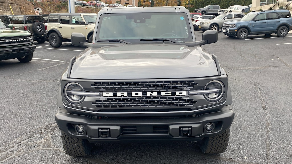 Gray 2025 Ford Bronco Badlands 4WD 10-Speed Automatic 2.7L EcoBoost V6 4-Wheel Disc Brakes, 4.7 Axle Ratio, 7 Speakers, ABS brakes, Air Conditioning, Alloy wheels, AM/FM radio: SiriusXM with 360L, AM/FM Stereo, Auto High-beam Headlights, Auto-dimming Rear-View mirror, Brake assist, Compass, Delay-off headlights, Driver door bin, Driver vanity mirror, Dual front impact airbags, Dual front side impact airbags, Electronic Stability Control, Emergency communication system: 911 Assist, Exterior Parking Camera Rear, Front anti-roll bar, Front Bucket Seats, Front Center Armrest, Front fog lights, Front reading lights, Front wheel independent suspension, Fully automatic headlights, Heated door mirrors, Heated front seats, Heated steering wheel, Illuminated entry, Integrated roll-over protection, Leather Shift Knob, Low tire pressure warning, Marine Grade Vinyl Heated Bucket Seats, Occupant sensing airbag, Outside temperature display, Overhead airbag, Overhead console, Panic alarm, Passenger door bin, Passenger vanity mirror, Power door mirrors, Power steering, Power windows, Radio data system, Remote keyless entry, Security system, SiriusXM w/360L, Speed control, Split folding rear seat, Steering wheel mounted audio controls, SYNC 4, Tachometer, Telescoping steering wheel, Tilt steering wheel, Traction control, Trip computer, Variably intermittent wipers, Voltmeter, Wheels: 17 Carbonized Gray-Painted Aluminum. Not all customers qualify for all incentives. See Dealer for details. Price includes: $1500 - Bonus Customer Cash. Exp. 12/17/2025