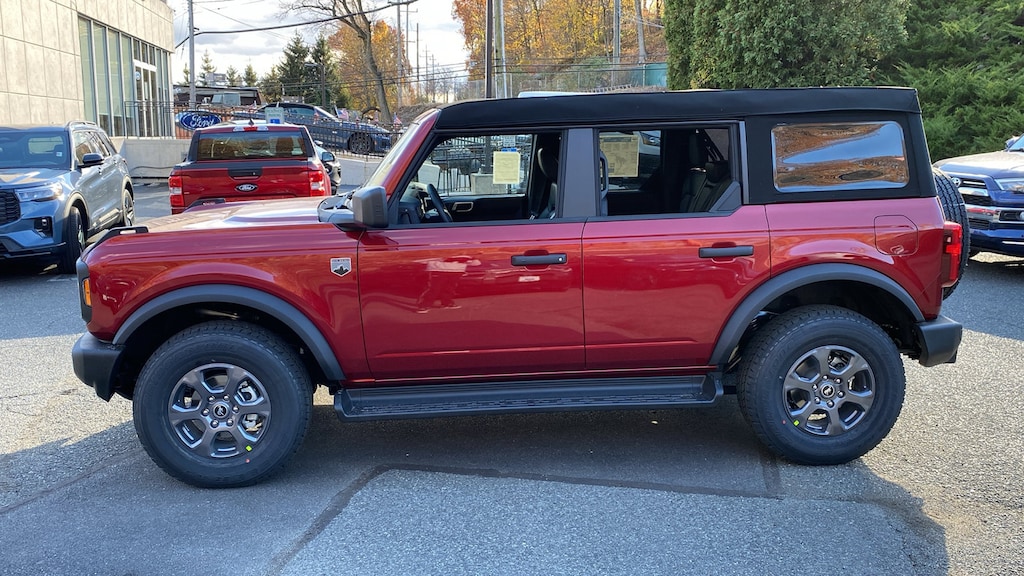 Ruby Red 2025 Ford Bronco Big Bend 4WD 2.3L EcoBoost I-4 4-Wheel Disc Brakes, 4.46 Axle Ratio, 7 Speakers, ABS brakes, Air Conditioning, Alloy wheels, AM/FM radio: SiriusXM with 360L, AM/FM Stereo, Auto High-beam Headlights, Brake assist, Cloth Bucket Seats, Compass, Delay-off headlights, Driver door bin, Driver vanity mirror, Dual front impact airbags, Dual front side impact airbags, Electronic Stability Control, Emergency communication system: 911 Assist, Exterior Parking Camera Rear, Front anti-roll bar, Front Bucket Seats, Front Center Armrest, Front reading lights, Front wheel independent suspension, Fully automatic headlights, Heated door mirrors, Illuminated entry, Integrated roll-over protection, Leather Shift Knob, Low tire pressure warning, Occupant sensing airbag, Outside temperature display, Overhead airbag, Overhead console, Panic alarm, Passenger door bin, Passenger vanity mirror, Power door mirrors, Power steering, Power windows, Radio data system, Remote keyless entry, Security system, SiriusXM w/360L, Speed control, Split folding rear seat, Steering wheel mounted audio controls, SYNC 4, Tachometer, Telescoping steering wheel, Tilt steering wheel, Traction control, Trip computer, Variably intermittent wipers, Wheels: 17 Carbonized Gray-Painted Aluminum. Not all customers qualify for all incentives. See Dealer for details. Price includes: $1500 - Bonus Customer Cash. Exp. 12/17/2025
