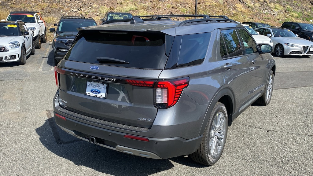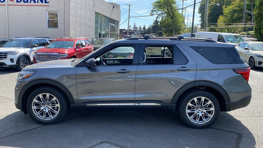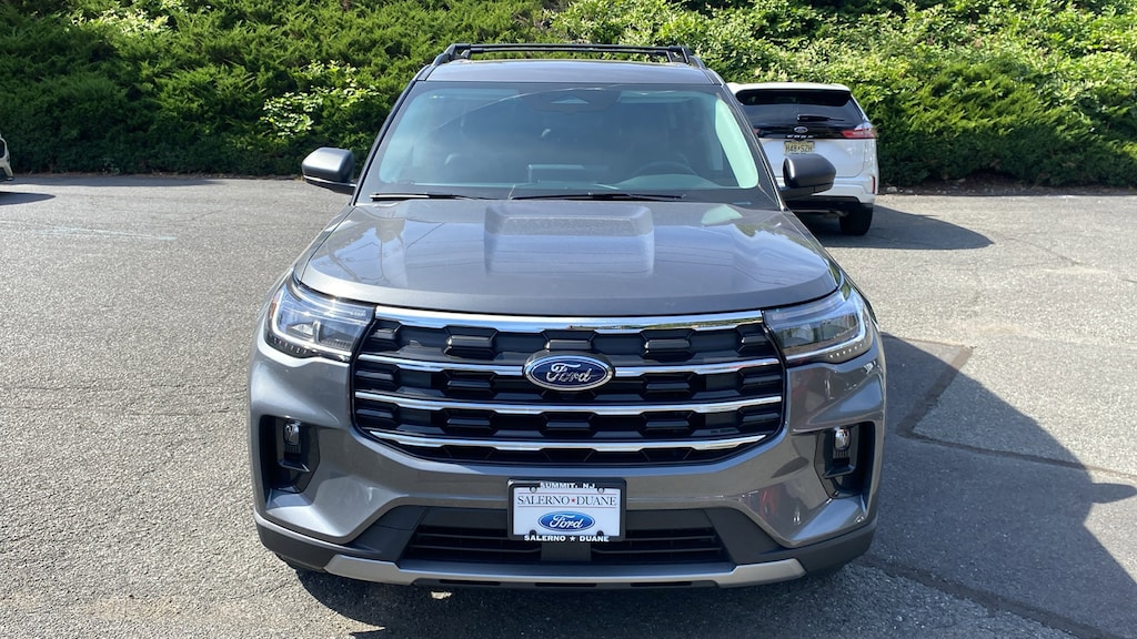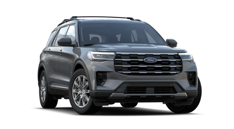 Gray Metallic 2025 Ford Explorer Active 4WD 10-Speed Automatic 2.3L EcoBoost I-4 4WD, 2nd Row 35/30/35 Bench w/E-Z Entry & Armrest, 3.58 Non-Limited Slip Rear Axle, 3rd row seats: bench, 4-Wheel Disc Brakes, 6 Speakers, ABS brakes, Active Comfort Package, Air Conditioning, Alloy wheels, AM/FM radio: SiriusXM with 360L, AM/FM Stereo, Apple CarPlay/Android Auto, Auto High-beam Headlights, Automatic temperature control, Brake assist, Bumpers: body-color, Compass, Delay-off headlights, Driver door bin, Driver vanity mirror, Dual front impact airbags, Dual front side impact airbags, Electronic Stability Control, Emergency communication system: 911 Assist, Equipment Group 200A Standard Package, Exterior Parking Camera Rear, Four wheel independent suspension, Front anti-roll bar, Front Bucket Seats, Front Center Armrest, Front dual zone A/C, Front Fascia, Front License Plate Bracket, Front reading lights, Fully automatic headlights, Heated ActiveX Seating Material Captain's Chairs, Heated door mirrors, Heated front seats, Heated Steering Wheel, Illuminated entry, Internet access capable: FordPass Connect 5G, Knee airbag, Leather steering wheel, Low tire pressure warning, Navigation System, Occupant sensing airbag, Outside temperature display, Overhead airbag, Overhead console, Panic alarm, Panoramic Vista Roof w/Power Shade, Passenger door bin, Passenger vanity mirror, Power door mirrors, Power driver seat, Power Liftgate, Power passenger seat, Power steering, Power windows, Rear air conditioning, Rear anti-roll bar, Rear reading lights, Rear window defroster, Rear window wiper, Remote keyless entry, Remote Start System, Second Row HVAC Controls, Security system, Speed control, Speed-sensing steering, Speed-Sensitive Wipers, Split folding rear seat, Spoiler, Steering wheel mounted audio controls, Tachometer, Telescoping steering wheel, Tilt steering wheel, Traction control, Trip computer, Unique Heated Cloth Captain's Chairs, Universal Garage Door Opener (UGDO), Variably intermittent wipers, Wheels: 18 Sparkle Silver-Painted Aluminum, Wheels: 20 Luster Nickel-Painted Aluminum, 4WD.