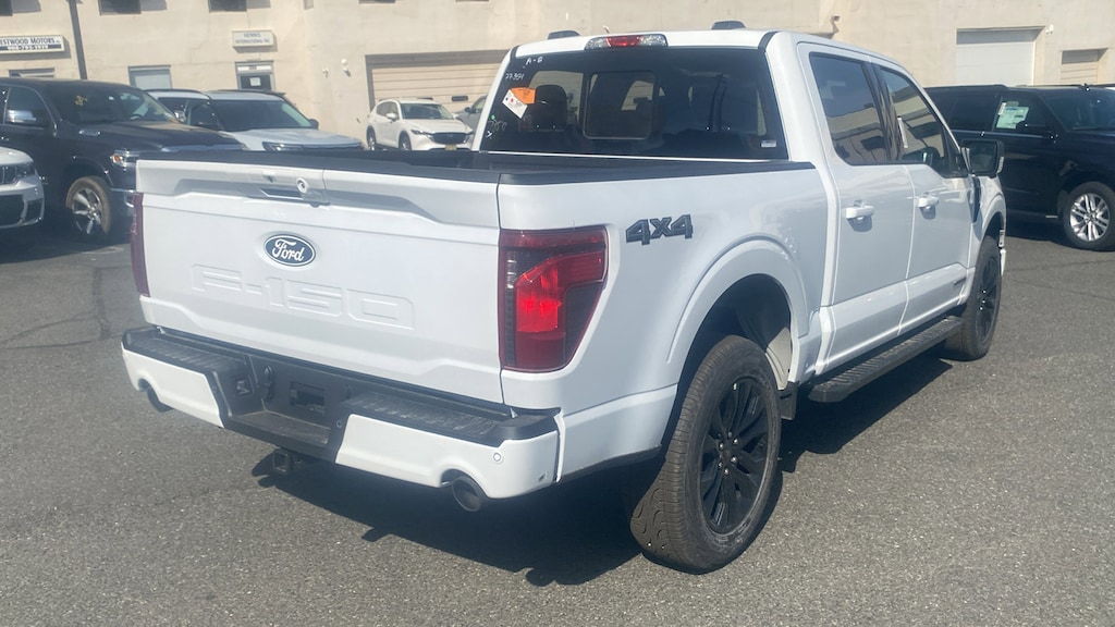 Oxford White 2025 Ford F-150 XLT 4WD 10-Speed Automatic 3.5L PowerBoost Full-Hybrid V6 3.5L PowerBoost Full-Hybrid V6, 4WD, 360 Degree Camera, 4-Wheel Disc Brakes, 400W Cab & Bed Outlets, 6 Speakers, 6 Angular Bright Anodized Step Bar, ABS brakes, Adaptive Cruise Control w/Stop & Go, Air Conditioning, Alloy wheels, AM/FM radio: SiriusXM with 360L, Auto High-beam Headlights, Auto-Dimming Rear-View Mirror, Black Painted Grille w/Chrome Center Bar, Brake assist, Bumpers: chrome, Chrome Door & Tailgate Handles, Chrome Single-Tip Exhaust, Chrome wheels, Cloth 40/20/40 Front Seat, Cloth 40/Console/40 Front Seats, Compass, Connected Navigation, Console Worksurface, Delay-off headlights, Driver door bin, Driver State Detection, Driver vanity mirror, Dual front impact airbags, Dual front side impact airbags, Dual-Zone Electronic Automatic Temperature Control, Electronic Stability Control, Emergency communication system: SYNC 4 911 Assist, Equipment Group 302A Mid, Evasive Steering Assist, Ford Co-Pilot360 Assist 2.0, Front anti-roll bar, Front Center Armrest, Front fog lights, Front License Plate Bracket, Front Parking Sensors, Front reading lights, Front wheel independent suspension, Fully automatic headlights, Heated door mirrors, Heated Front Seats, Illuminated entry, Intelligent Access w/Push Button Start, Internet access capable: FordPass Connect 5G, Low tire pressure warning, Mobile Office Package, Occupant sensing airbag, Outside temperature display, Overhead airbag, Overhead console, Panic alarm, Partitioned Lockable Rear Storage, Passenger door bin, Passenger vanity mirror, Power door mirrors, Power Glass Heated Sideview Mirrors, Power steering, Power windows, Power-Sliding Rear Window, Radio data system, Radio: AM/FM Stereo w/SiriusXM 360L, Rear Parking Sensors, Rear reading lights, Rear step bumper, Rear window defroster, Remote keyless entry, Remote Start System w/Remote Tailgate Release, Security system, Speed control, Split folding rear seat, Steering wheel mounted audio controls, SYNC 4 w/Enhanced Voice Recognition, Tachometer, Telescoping steering wheel, Tilt steering wheel, Tough Bed Spray-In Bedliner, Towing Technology, Traction control, Trip computer, Variably intermittent wipers, Voltmeter, Wheels: 18 Chrome-Like PVD, Wrapped Steering Wheel, 3.5L PowerBoost Full-Hybrid V6, 4WD.