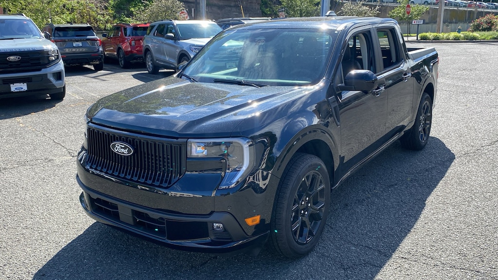 Shadow Black 2025 Ford Maverick Lobo High AWD 7-Speed Automatic EcoBoost 2.0L I4 GTDi DOHC Turbocharged VCT 3.63 Axle Ratio, 360-Degree Camera, 4-Wheel Disc Brakes, 400W Inverter w/USB Console Rear, 8 Speakers, ABS brakes, Acoustic Windshield, ActiveX Trimmed Front Bucket Seats, Adaptive Cruise Control (ACC) w/Stop & Go, Air Conditioning, Alloy wheels, AM/FM radio: SiriusXM with 360L, Ambient Lighting & LED Box Lighting, Apple CarPlay/Android Auto, Auto High Beams, Auto High-beam Headlights, Automatic temperature control, Bed Tie Down Locking Rails w/2 Locking Brackets, Black Painted Roof Delete, Blind Spot Assist, Brake assist, Bumpers: body-color, Compass, Delay-off headlights, Driver door bin, Driver vanity mirror, Driver/Passenger Illuminated Visors, Dual front impact airbags, Dual front side impact airbags, Dual-Zone Electronic Automatic Temperature Control, Electric Sound Enhancement, Electronic Stability Control, Emergency communication system: SYNC 4 911 Assist, Equipment Group 702A High, Evasive Steering Assist, Exterior Parking Camera Rear, Ford Co-Pilot Assist 2.0, Four wheel independent suspension, Front & Rear All-Weather Floor Liners, Front anti-roll bar, Front Bucket Seats, Front Center Armrest, Front dual zone A/C, Front fog lights, Front Parking Sensors, Front reading lights, Fully automatic headlights, Heated front seats, Heated Seats, Heated Steering Wheel, Heated steering wheel, Illuminated entry, Intersection Assist, Knee airbag, Lane-Keeping System, Low tire pressure warning, Navigation system: Connected Navigation, Occupant sensing airbag, Outside temperature display, Overhead airbag, Overhead console, Panic alarm, Passenger door bin, Passenger vanity mirror, Post-Collision Braking, Power door mirrors, Power driver seat, Power Moonroof, Power moonroof, Power steering, Power windows, Power-Sliding Rear Window, Predictive Speed Assist, Pro Trailer Backup Assist, Pro Trailer Hitch Assist, Radio data system, Radio: B&O Sound System by Bang & Olufsen, Rear anti-roll bar, Rear Parking Sensor, Rear seat center armrest, Rear step bumper, Remote keyless entry, Reverse Brake Assist, Security system, SiriusXM w/360L, Speed control, Speed-sensing steering, Steering wheel mounted audio controls, SYNC 4 w/Enhanced Voice Recognition, Tachometer, Telescoping steering wheel, Tilt steering wheel, Tough Bed Spray-In Bedliner, Traction control, Trip computer, Wheels: 19 Black Painted Aluminum, Wheels: 19 Turbofan-styled Black Painted Aluminum, Wireless Charging Pad.
