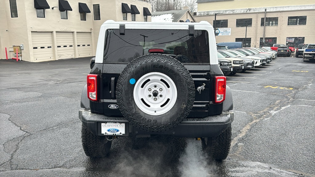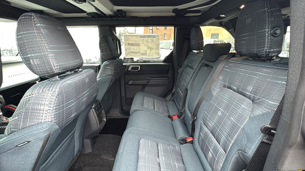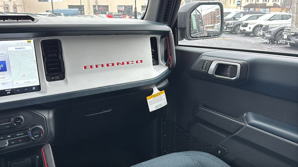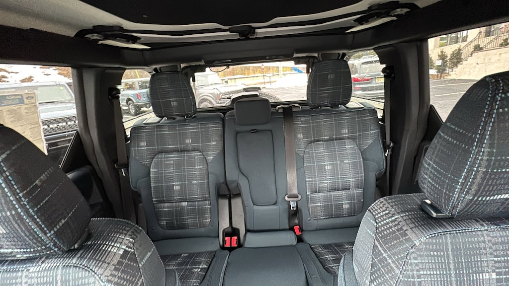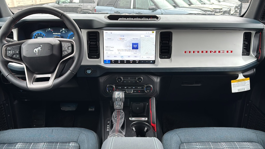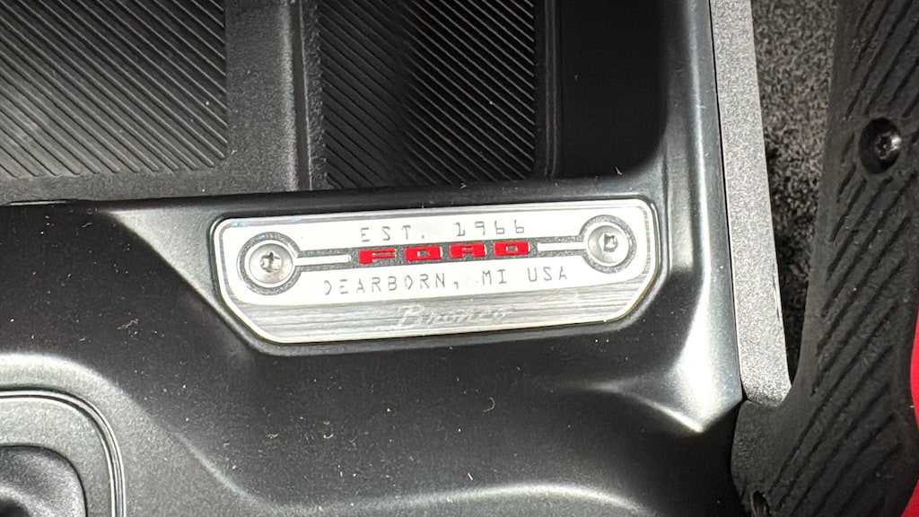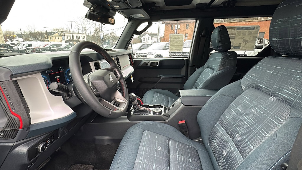 Shadow Black 2026 Ford Bronco Heritage Edition 4WD 10-Speed Automatic 2.7L EcoBoost V6 4-Wheel Disc Brakes, 7 Speakers, ABS brakes, Air Conditioning, Alloy wheels, AM/FM radio: SiriusXM with 360L, AM/FM Stereo, Auto High-beam Headlights, Auto-dimming Rear-View mirror, Automatic temperature control, Brake assist, Compass, Connected Navigation, Convertible HardTop, Convertible roof lining, Delay-off headlights, Driver door bin, Driver vanity mirror, Dual front impact airbags, Dual front side impact airbags, Electronic Stability Control, Emergency communication system: 911 Assist, Exterior Parking Camera Rear, Ford Connectivity Package (1-Year Included), Front anti-roll bar, Front Bucket Seats, Front Center Armrest, Front dual zone A/C, Front fog lights, Front reading lights, Front wheel independent suspension, Fully automatic headlights, Glass rear window, Heated door mirrors, Heated front seats, Heated steering wheel, Illuminated entry, Integrated roll-over protection, Low tire pressure warning, Navigation system: Connected Navigation, Occupant sensing airbag, Outside temperature display, Overhead airbag, Overhead console, Panic alarm, Passenger door bin, Passenger vanity mirror, Plaid Cloth Front Heated Bucket Seats, Power door mirrors, Power steering, Power windows, Radio data system, Rear window defroster, Rear window wiper, Remote keyless entry, Security system, SiriusXM with 360L, Speed control, Split folding rear seat, Steering wheel mounted audio controls, SYNC 4, Tachometer, Telescoping steering wheel, Tilt steering wheel, Traction control, Trip computer, Variably intermittent wipers, Wheels: 17 Unique White. Not all customers qualify for all incentives. See Dealer for details. Price includes: $750 - Retail Customer Cash. Exp. 04/30/2026