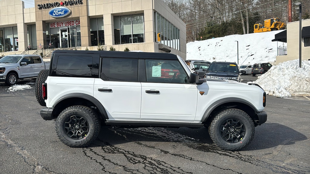 Oxford White 2026 Ford Bronco Badlands 4WD 10-Speed Automatic 2.7L EcoBoost V6 4-Wheel Disc Brakes, 4.7 Axle Ratio, 7 Speakers, ABS brakes, Air Conditioning, Alloy wheels, AM/FM radio: SiriusXM with 360L, AM/FM Stereo, Auto High-beam Headlights, Auto-dimming Rear-View mirror, Brake assist, Compass, Delay-off headlights, Driver door bin, Driver vanity mirror, Dual front impact airbags, Dual front side impact airbags, Electronic Stability Control, Emergency communication system: 911 Assist, Exterior Parking Camera Rear, Ford Connectivity Package (1-Year Included), Front anti-roll bar, Front Bucket Seats, Front Center Armrest, Front fog lights, Front reading lights, Front wheel independent suspension, Fully automatic headlights, Heated door mirrors, Heated front seats, Illuminated entry, Integrated roll-over protection, Leather Shift Knob, Low tire pressure warning, Marine Grade Vinyl Heated Bucket Seats, Occupant sensing airbag, Outside temperature display, Overhead airbag, Overhead console, Panic alarm, Passenger door bin, Passenger vanity mirror, Power door mirrors, Power steering, Power windows, Radio data system, Remote keyless entry, Security system, SiriusXM with 360L, Speed control, Split folding rear seat, Steering wheel mounted audio controls, SYNC 4, Tachometer, Telescoping steering wheel, Tilt steering wheel, Traction control, Trip computer, Variably intermittent wipers, Voltmeter, Wheels: 17 Carbonized Gray-Painted Aluminum. Not all customers qualify for all incentives. See Dealer for details. Price includes: $750 - Retail Customer Cash. Exp. 04/30/2026