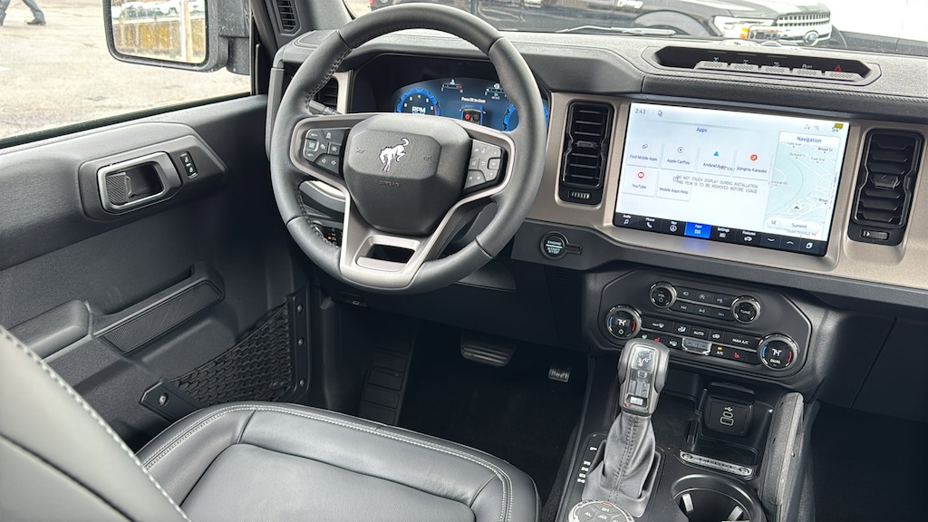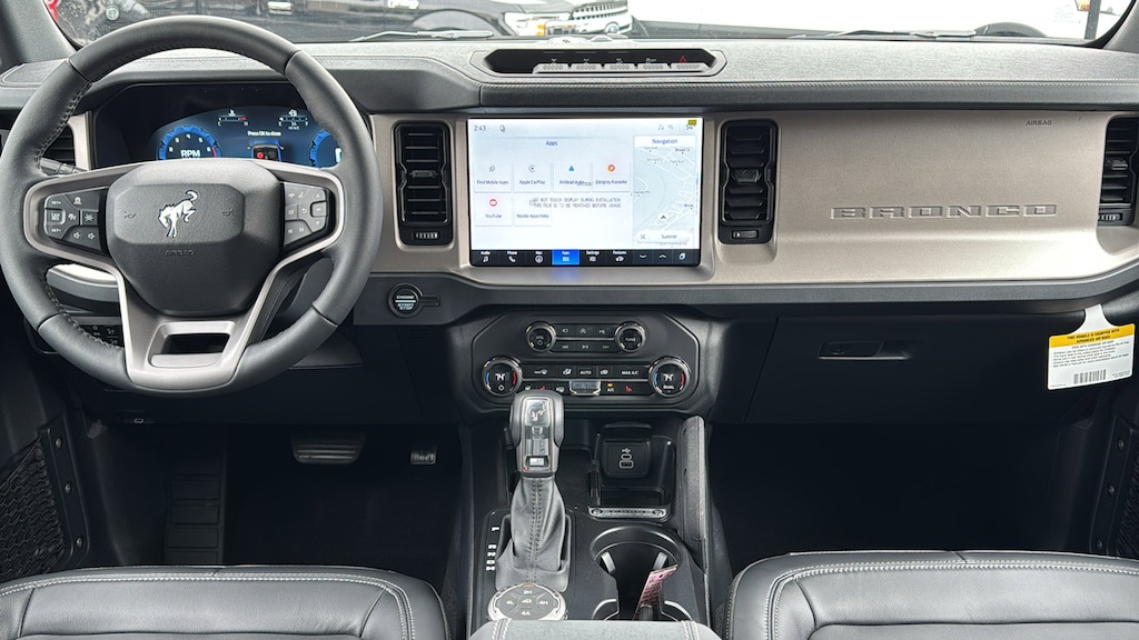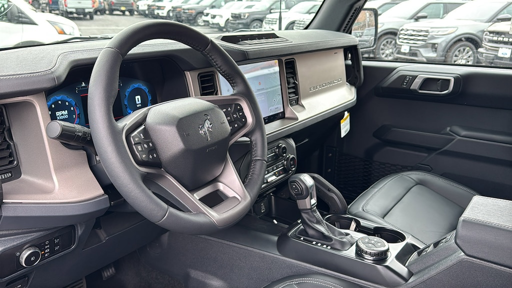 Shadow Black 2026 Ford Bronco Outer Banks 4WD 10-Speed Automatic 2.7L EcoBoost V6 18 Bright Machined Aluminum Wheels, 3.73 Axle Ratio, 4-Wheel Disc Brakes, 7 Speakers, ABS brakes, Air Conditioning, Alloy wheels, AM/FM radio: SiriusXM with 360L, AM/FM Stereo, Auto High-beam Headlights, Auto-dimming Rear-View mirror, Automatic temperature control, Brake assist, Compass, Connected Navigation, Delay-off headlights, Driver door bin, Driver vanity mirror, Dual front impact airbags, Dual front side impact airbags, Electronic Stability Control, Emergency communication system: 911 Assist, Exterior Parking Camera Rear, Ford Connectivity Package (1-Year Included), Front anti-roll bar, Front Bucket Seats, Front Center Armrest, Front dual zone A/C, Front fog lights, Front reading lights, Front wheel independent suspension, Fully automatic headlights, Heated door mirrors, Heated front seats, Heated Leather-Trimmed/Vinyl Bucket Seats, Heated steering wheel, Illuminated entry, Integrated roll-over protection, Leather Shift Knob, Low tire pressure warning, Navigation system: Connected Navigation, Occupant sensing airbag, Outside temperature display, Overhead airbag, Overhead console, Panic alarm, Passenger door bin, Passenger vanity mirror, Power door mirrors, Power driver seat, Power passenger seat, Power steering, Power windows, Radio data system, Rear seat center armrest, Remote keyless entry, Security system, SiriusXM with 360L, Speed control, Split folding rear seat, Steering wheel mounted audio controls, SYNC 4, Tachometer, Telescoping steering wheel, Tilt steering wheel, Traction control, Trip computer, Variably intermittent wipers, Voltmeter. Not all customers qualify for all incentives. See Dealer for details. Price includes: $750 - Retail Customer Cash. Exp. 04/30/2026