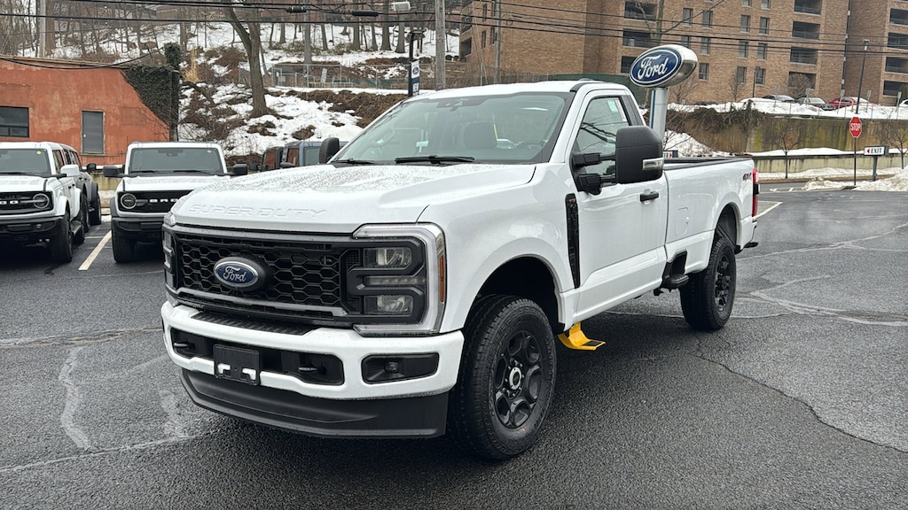 Oxford White 2026 Ford F-350SD 4WD 10-Speed Automatic 7.3L V8 PFI SOHC 16V Federal 405hp 4WD, 190 Amp Alternator, 3.73 Axle Ratio, 4 Speakers, 4-Wheel Disc Brakes, ABS brakes, Air Conditioning, AM/FM radio, Brake assist, Cloth 40/20/40 Split Bench Seat, Compass, Delay-off headlights, Dual front impact airbags, Dual front side impact airbags, Electronic Stability Control, Emergency communication system: SYNC 4 911 Assist, Exterior Parking Camera Rear, Ford Connectivity Package (1-Year Included), Front anti-roll bar, Front Center Armrest w/Storage, Front reading lights, Fully automatic headlights, GVWR: 10,900 Lb Payload Package, Heated door mirrors, Illuminated entry, Internet access capable: 5G Modem - Ford Connectivity Package, Low tire pressure warning, Outside temperature display, Overhead airbag, Overhead console, Panic alarm, Passenger cancellable airbag, Passenger vanity mirror, Power door mirrors, Power steering, Power windows, Radio: AM/FM Stereo with MP3 Player, Rear step bumper, Remote keyless entry, Security system, Speed control, Steering wheel mounted audio controls, SYNC 4, Tachometer, Telescoping steering wheel, Tilt steering wheel, Traction control, Trip computer, Turn signal indicator mirrors, Variably intermittent wipers, 4WD.