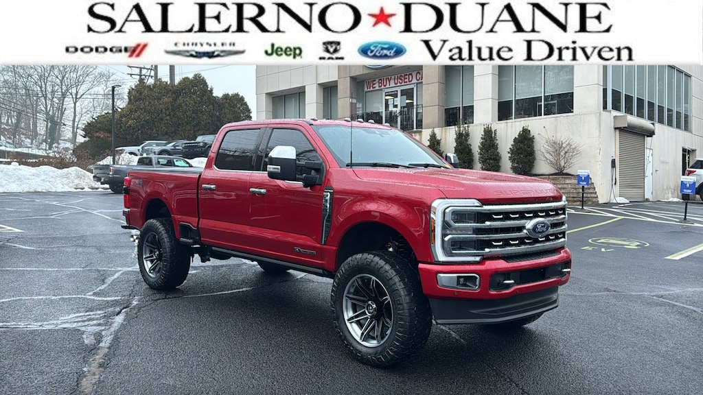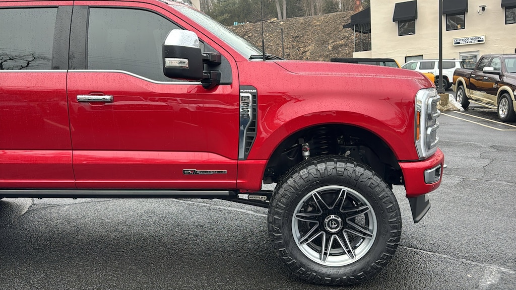 CARFAX One-Owner. Clean CARFAX. Certified. Recent Arrival! Red Metallic 2024 Ford F-350SD Platinum 4WD 10-Speed Automatic Power Stroke 6.7L V8 DI 32V OHV Turbodiesel