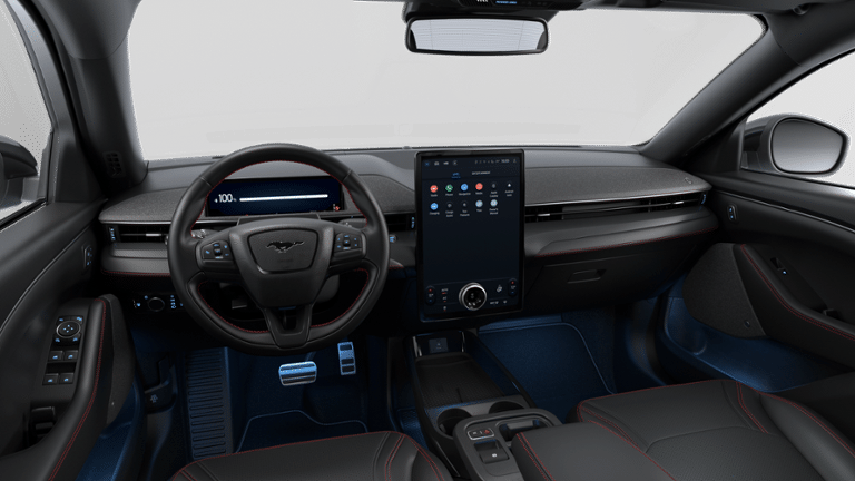 Gray 2026 Ford Mustang Mach-E Premium AWD Single-Speed Automatic Electric Motor 10 Speakers, 4-Wheel Disc Brakes, ABS brakes, Air Conditioning, Alloy wheels, AM/FM radio: SiriusXM with 360L, Apple CarPlay/Android Auto, Auto High-beam Headlights, Auto-dimming Rear-View mirror, Automatic temperature control, Brake assist, Bumpers: body-color, Compass, Delay-off headlights, Driver door bin, Driver vanity mirror, Dual front impact airbags, Dual front side impact airbags, Electronic Stability Control, Emergency communication system: 911 Assist, Exterior Parking Camera Rear, Four wheel independent suspension, Front anti-roll bar, Front Bucket Seats, Front Center Armrest, Front dual zone A/C, Front reading lights, Fully automatic headlights, Heated door mirrors, Heated front seats, Heated steering wheel, Heated/Ventilated ActiveX Bucket Seats, Illuminated entry, Knee airbag, Low tire pressure warning, Memory seat, Navigation system: Connected Navigation, Occupant sensing airbag, Outside temperature display, Overhead airbag, Overhead console, Panic alarm, Passenger door bin, Passenger vanity mirror, Power door mirrors, Power driver seat, Power passenger seat, Power steering, Power windows, Radio data system, Radio: B&O Sound System by Bang and Olufsen, Rain sensing wipers, Rear anti-roll bar, Rear seat center armrest, Rear side impact airbag, Rear window defroster, Rear window wiper, Remote keyless entry, Security system, SiriusXM with 360L, Speed control, Speed-sensing steering, Speed-Sensitive Wipers, Split folding rear seat, Spoiler, Steering wheel mounted audio controls, SYNC 4A with Enhanced Voice Recognition, Telescoping steering wheel, Tilt steering wheel, Traction control, Trip computer, Turn signal indicator mirrors, Variably intermittent wipers, Ventilated front seats, Wheels: 19 Bright Machined-Face Aluminum.